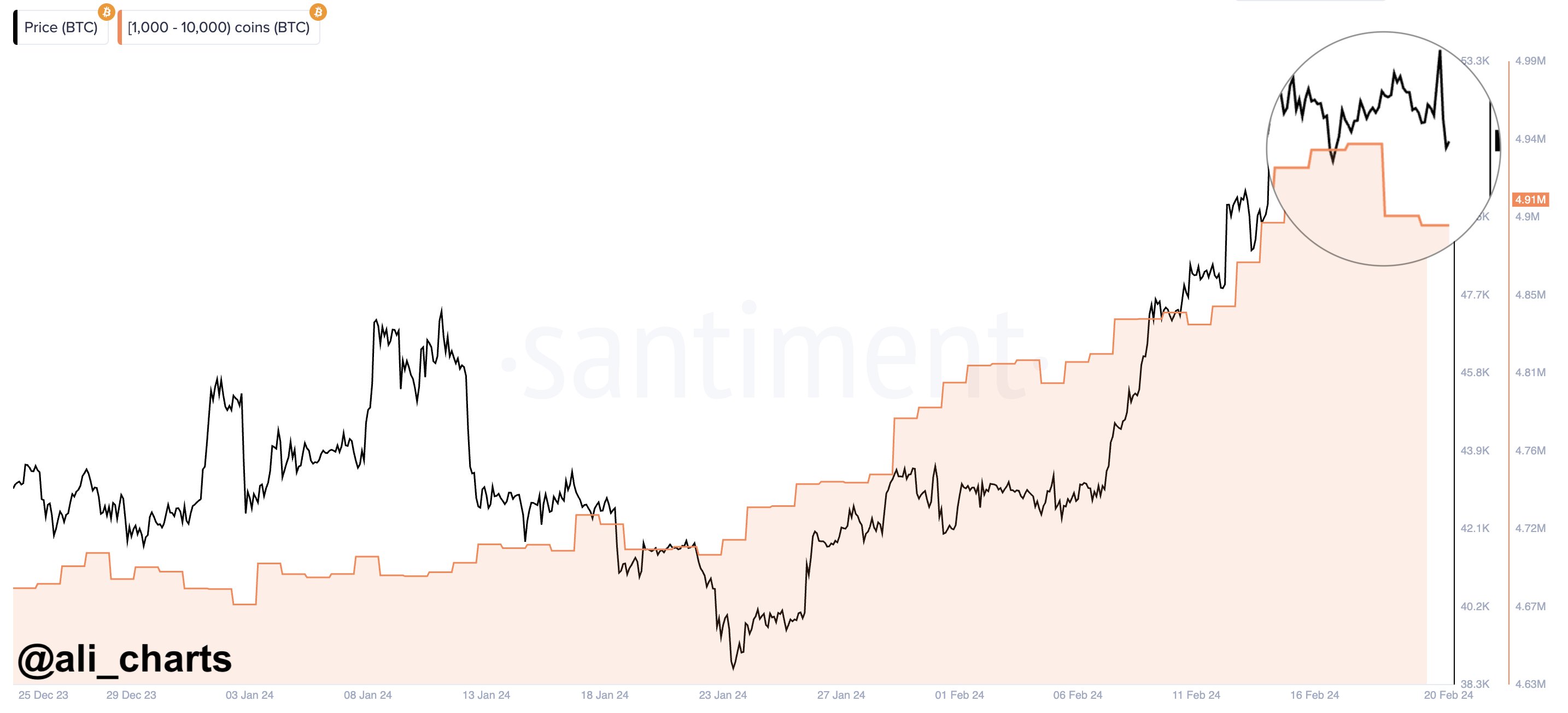 Như nhà phân tích Ali đã chỉ ra trong bài đăng trên X, rằng cá voi BTC gần đây đã tiến hành bán tháo.