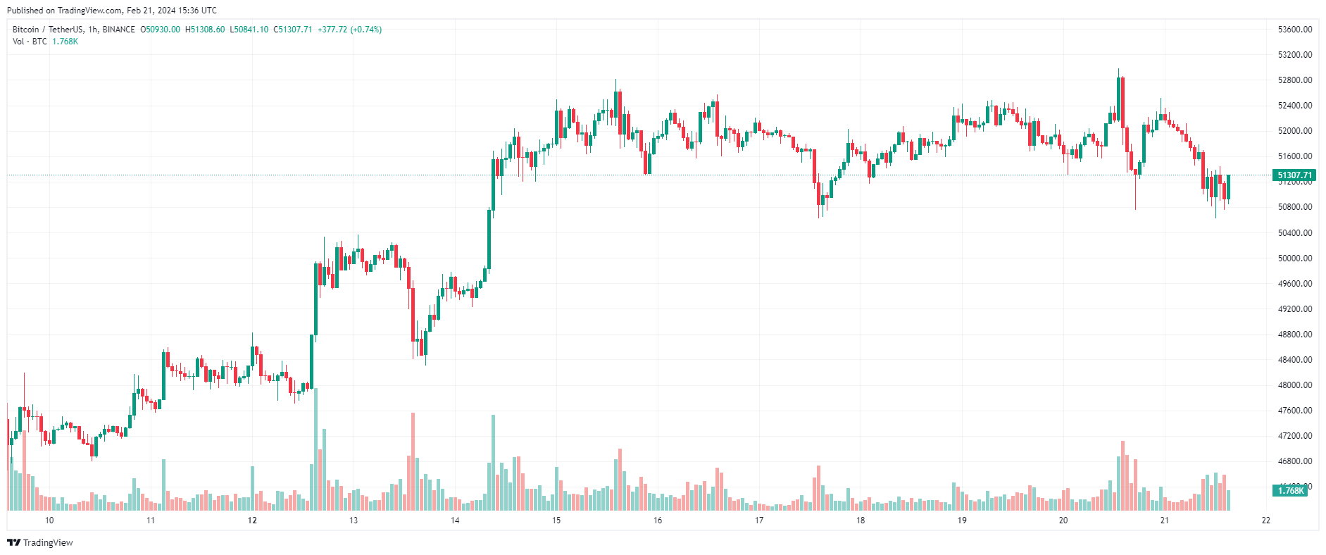 Hôm qua, Bitcoin đã chứng kiến một đợt tăng mạnh chạm ngưỡng $ 53.000 và thiết lập mức đỉnh mới trong năm, nhưng đợt tăng giá này chỉ tồn tại trong thời gian ngắn khi tiền điện tử hàng đầu ngay sau đó đã lao dốc mạnh xuống dưới $ 51.000.