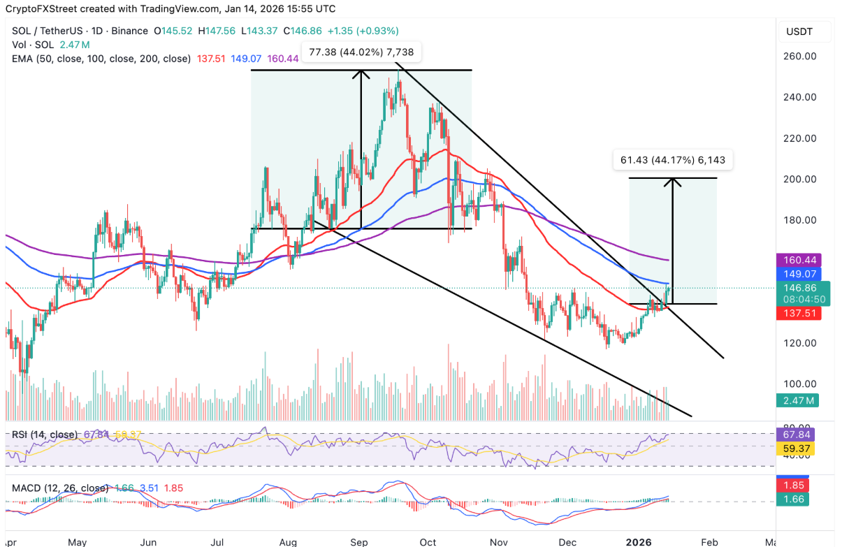 Triển vọng kỹ thuật: Solana bứt phá mô hình nêm giảm, mục tiêu hướng tới 200 USD