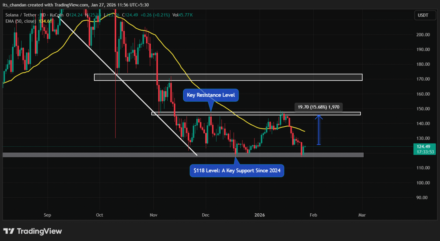 Diễn biến trên cho thấy tâm lý thận trọng đang bao trùm thị trường, khi giới giao dịch và nhà đầu tư tỏ ra dè dặt trước việc giá SOL dao động sát vùng hỗ trợ then chốt quanh mốc 118 USD.