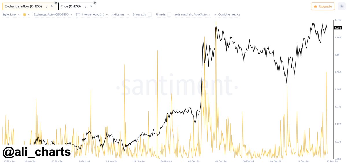 Ngoài ra, Martinez cũng cập nhật quan điểm của mình về dự án tài sản thế giới thực Ondo Finance (ONDO). Ông cho rằng dự án có thể sẽ đối mặt với biến động giá trong thời gian tới, khi dòng tiền đổ vào các sàn giao dịch đang gia tăng.