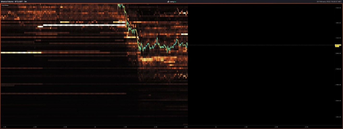 Đối với Bitcoin, anh đang xem xét bản đồ nhiệt của vua tiền điện tử. Biểu đồ này theo dõi cung và cầu bằng cách trực quan hóa sổ lệnh của thị trường. Theo nhà phân tích, Bitcoin sẽ kích hoạt sự kiện bán tháo khác khi bản đồ nhiệt phản ánh nhu cầu hạn chế.