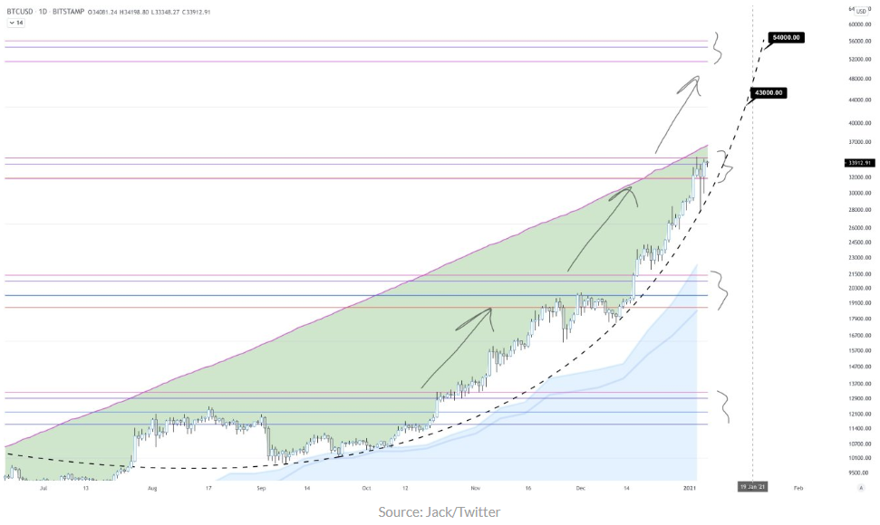 Mặc dù nhà phân tích đang lạc quan về Bitcoin, nhưng anh tin rằng tiền điện tử chuẩn sẽ phải điều chỉnh 33% sau khi nó đạt mục tiêu $ 54.000 của anh.
