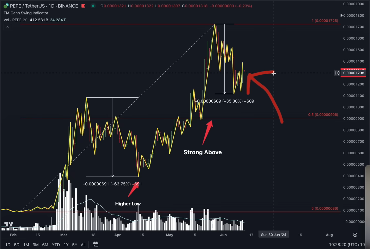 Biểu đồ PEPE/USDT hàng ngày | Nguồn: Jason Pizzino/YouTube