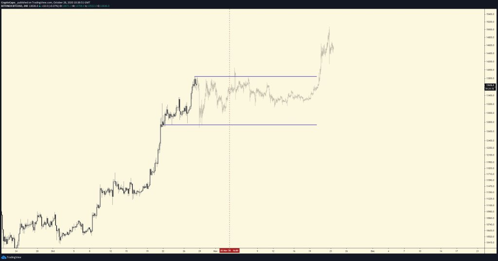 Đối với Bitcoin, Capo cho rằng vua tiền điện tử sẽ tiếp tục củng cố trong những ngày tới trước khi kích hoạt một động thái tăng mạnh.