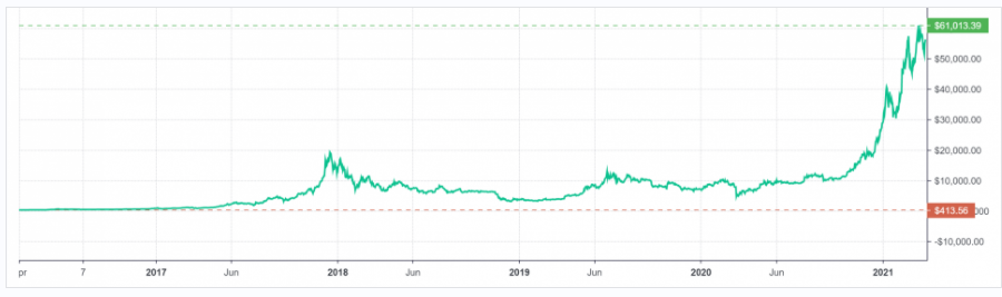 Biểu đồ thể hiện giá bitcoin từ năm 2017 đến nay | Nguồn: Coinmarketcap