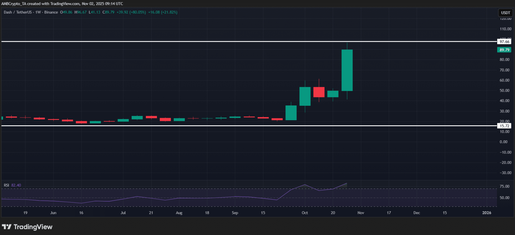 Biểu đồ DASH/USDT hàng ngày | Nguồn: TradingView