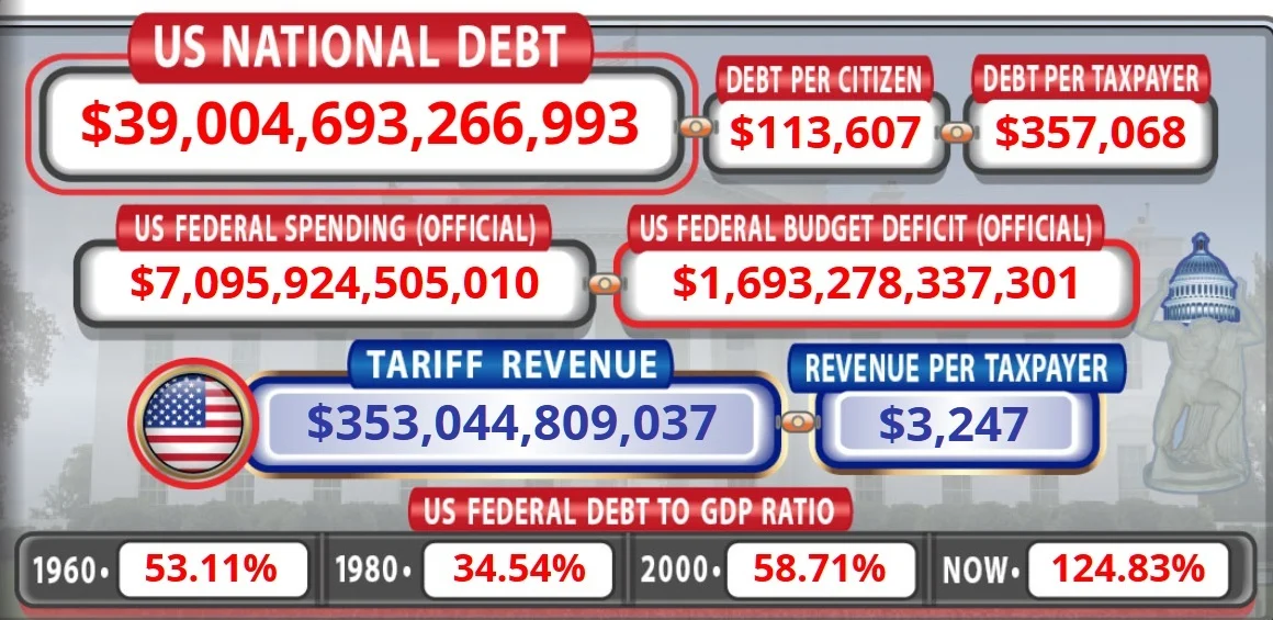 Áp lực tài khóa của Hoa Kỳ đang gia tăng rõ rệt khi nợ công vượt mốc 39 nghìn tỷ USD và có thể tiến tới 50 nghìn tỷ USD, trong bối cảnh chi phí vay tăng, thâm hụt kéo dài và chi tiêu địa chính trị leo thang.