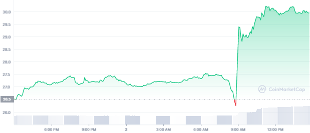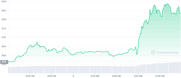 OKT, token hệ sinh thái cho blockchain của sàn giao dịch, cũng tăng 13,3% trong ngày qua lên 28,85 đô la Mỹ.