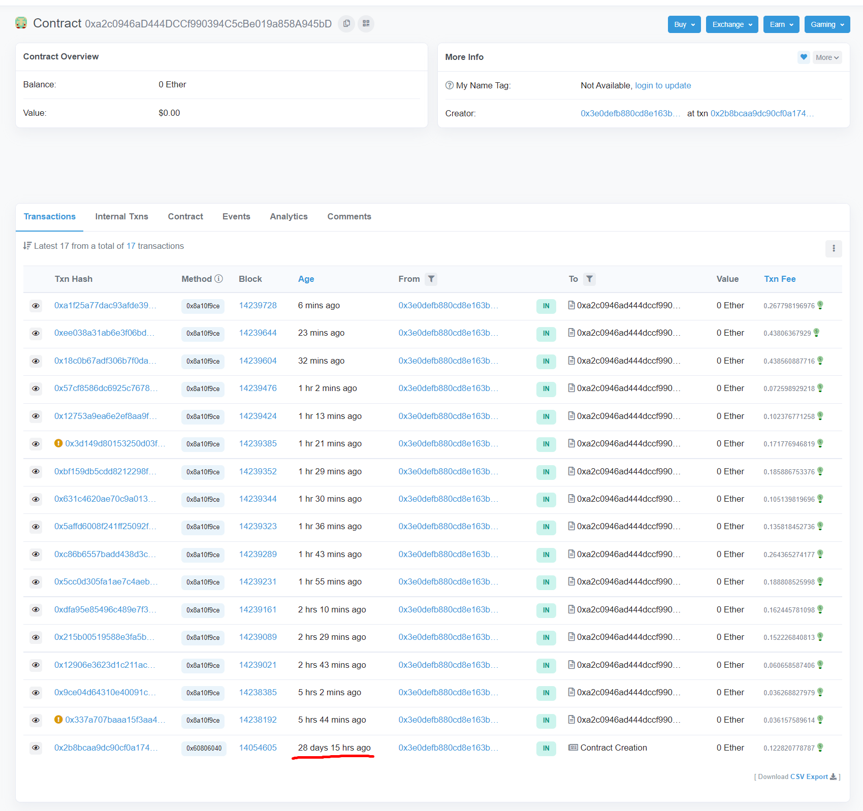 Điều thú vị là hợp đồng tấn công đã được tạo ra cách đây 28 ngày, trước khi quá trình di cư của Opensea được triển khai.