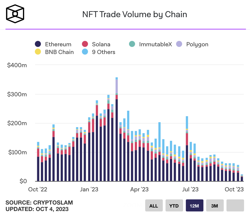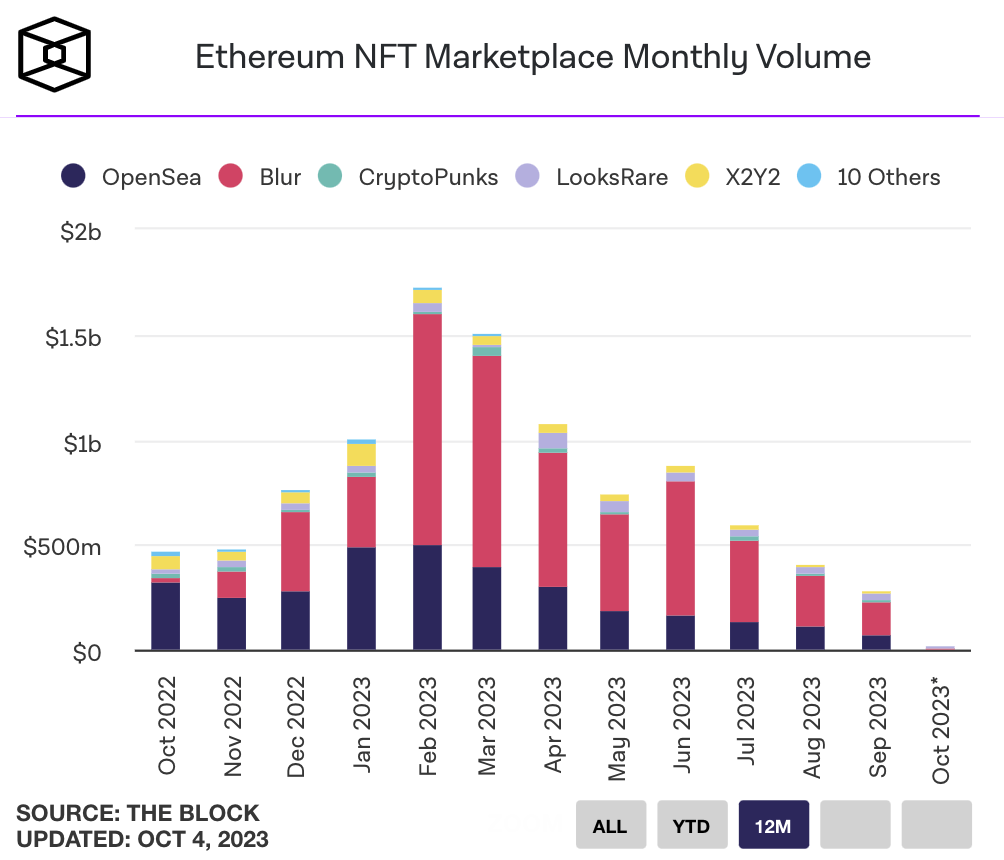 Tổng số giao dịch cho NFT dựa trên Ethereum đã giảm kể từ tháng 2. Trong khi đó, thị trường đối thủ Blur đã thay thế OpenSea vào cuối năm ngoái để trở thành nền tảng giao dịch hàng đầu tính theo khối lượng giao dịch.