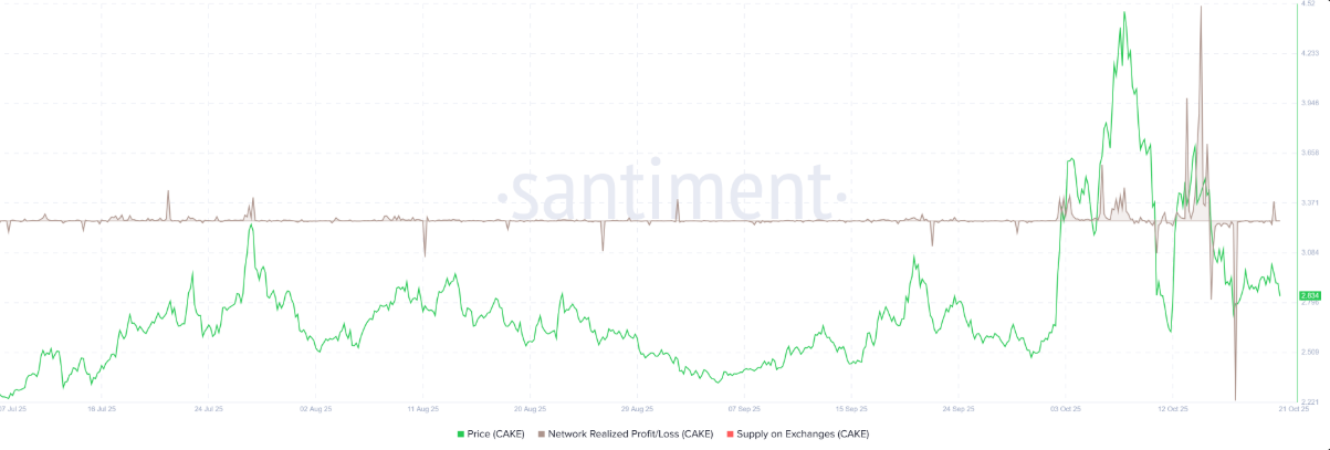 Chỉ báo Network Realized Profit/Loss (NPL) của Santiment cho thấy các nhà đầu tư PancakeSwap đang gia tăng hoạt động chốt lời.