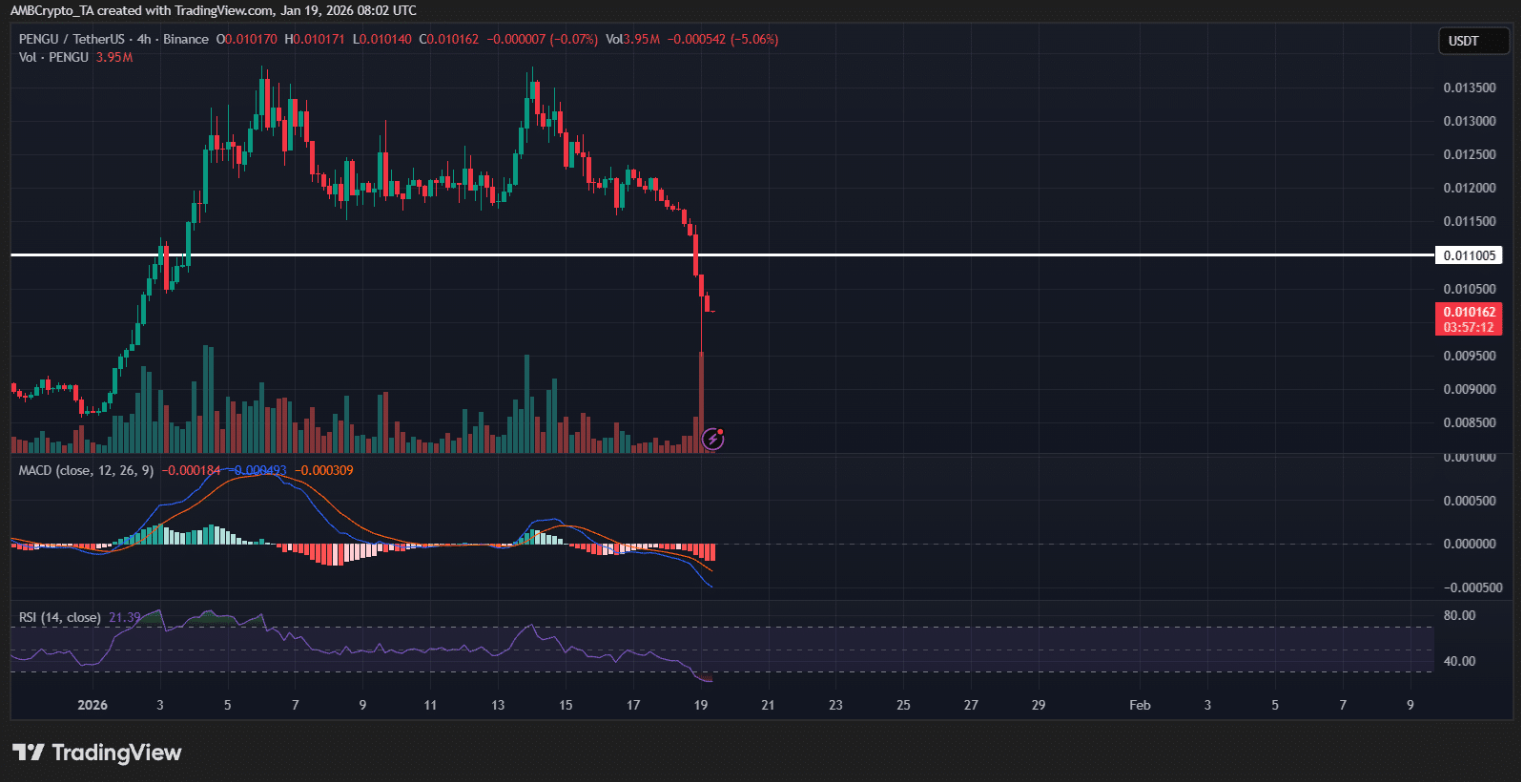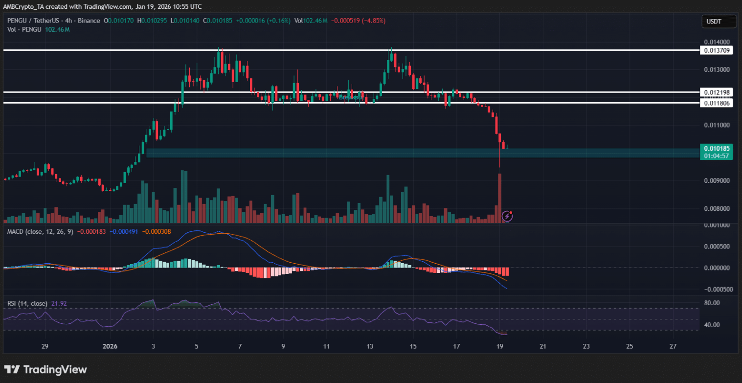 Những gì ban đầu được xem là chiến thắng về mặt thương hiệu nhanh chóng biến thành một cuộc thử nghiệm thực sự trên thị trường. Trong ngắn hạn, PENGU đang đối mặt với lộ trình hai chiều rõ ràng, được chi phối bởi thanh khoản và tâm lý nhà đầu tư.