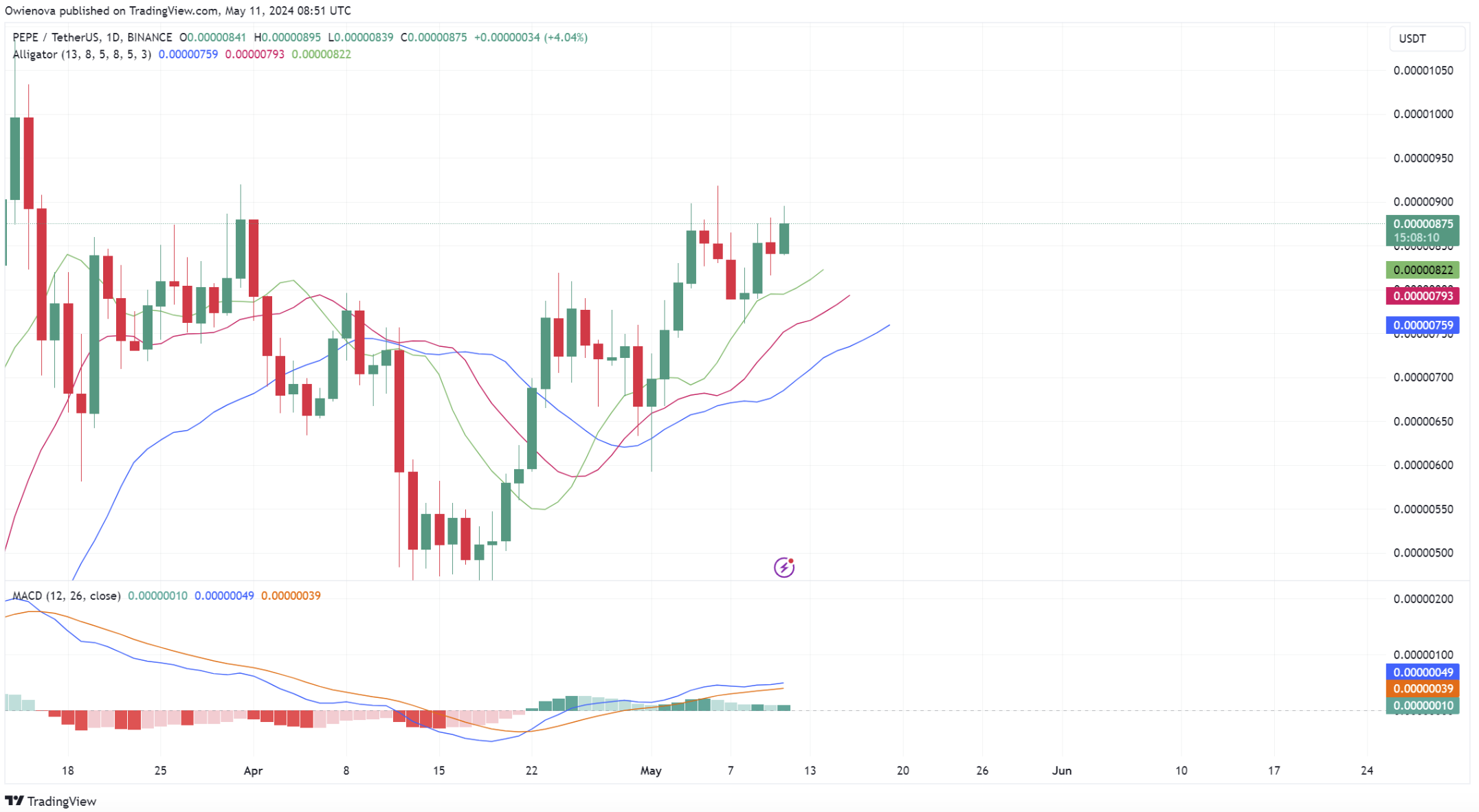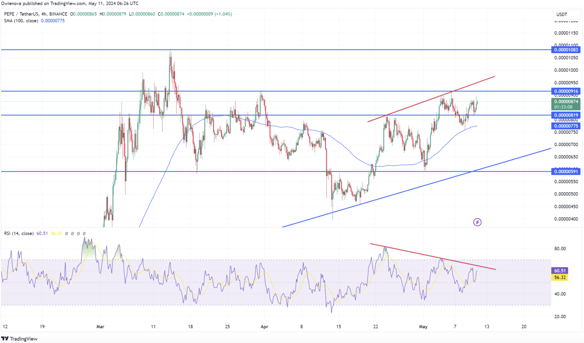 Tính đến thời điểm viết bài, PEPE vẫn đang nằm trên cả đường SMA 100 ngày và đường xu hướng, giao dịch ở mức 0,0000086 USD, tăng gần 3% trong 24 giờ qua.