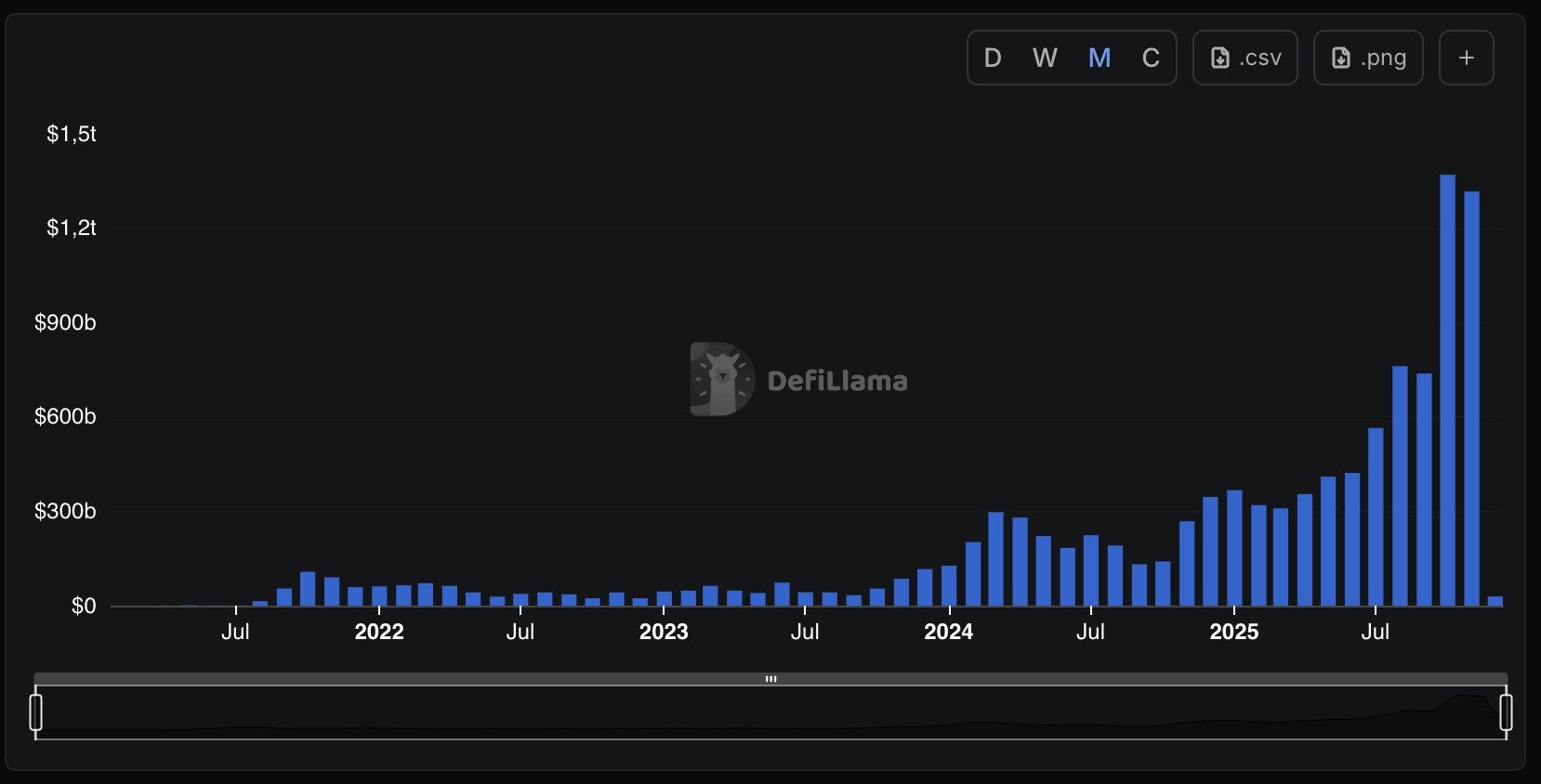 - Khối lượng Perp DEX đạt kỷ lục 1,2 nghìn tỷ đô la vào tháng 10 khi các ưu đãi và thanh lý thúc đẩy sự gia tăng