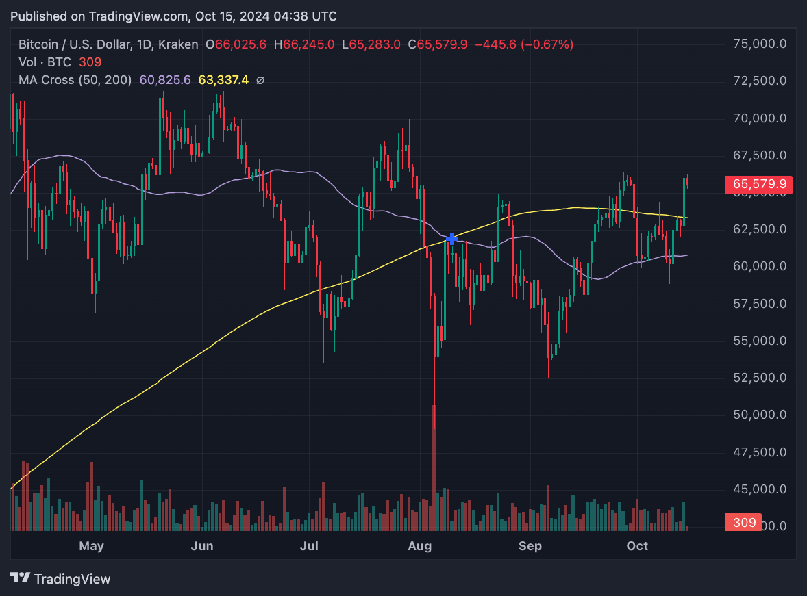Sau đó, vào ngày 11 tháng 10, thị trường đã hồi phục, với Bitcoin đạt 62.500 USD, vượt qua đường trung bình động 50 ngày. Tuy nhiên, giá vẫn nằm dưới đường trung bình động 200 ngày, một mức kháng cự mạnh.