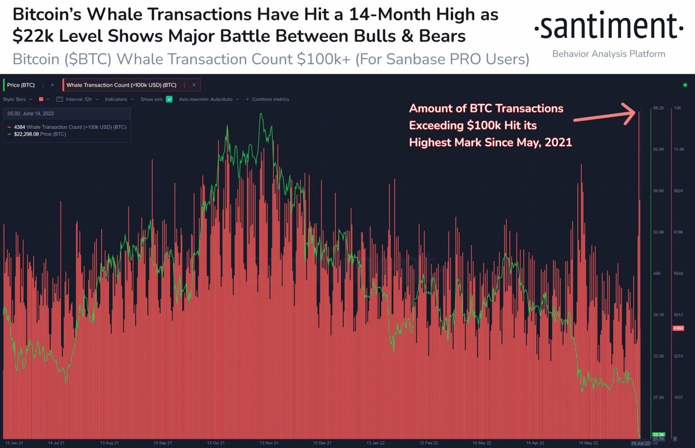 Theo một tweet của Santiment, Bitcoin có tổng cộng 12.969 giao dịch cá voi từ 21 giờ đến 9 giờ hôm sau (theo giờ Việt Nam) trong 24 giờ qua. Đây là số tiền lớn nhất được quan sát thấy trên mạng kể từ tháng 5/2021.