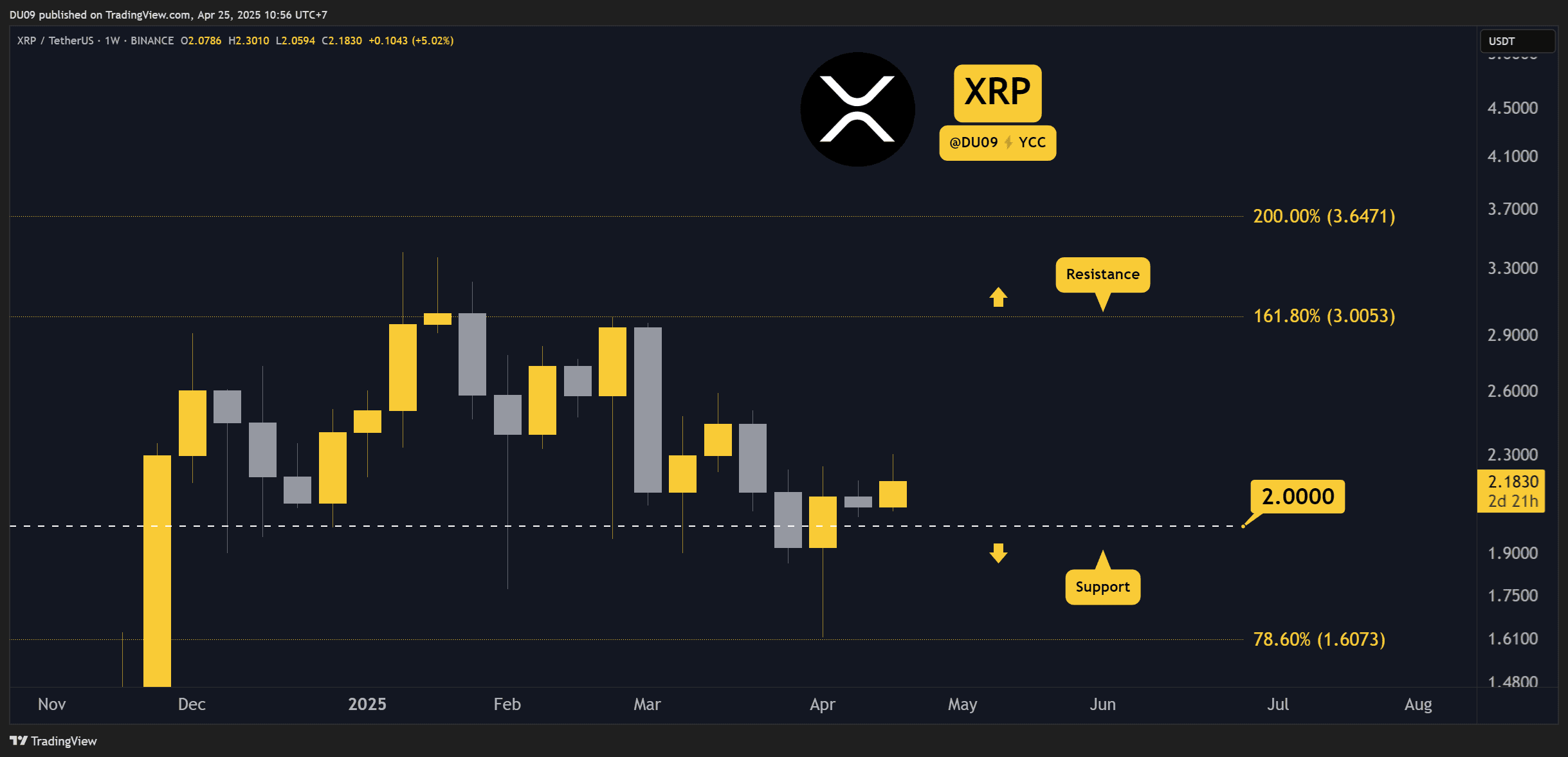 XRP có phần yếu hơn so với các đồng tiền khác trong tuần này, nhưng vẫn duy trì mức tăng 6% – đủ để giữ giá ổn định trên ngưỡng hỗ trợ quan trọng 2 USD. Miễn là XRP duy trì được trên mức này, xu hướng tổng thể vẫn nghiêng về tăng giá.