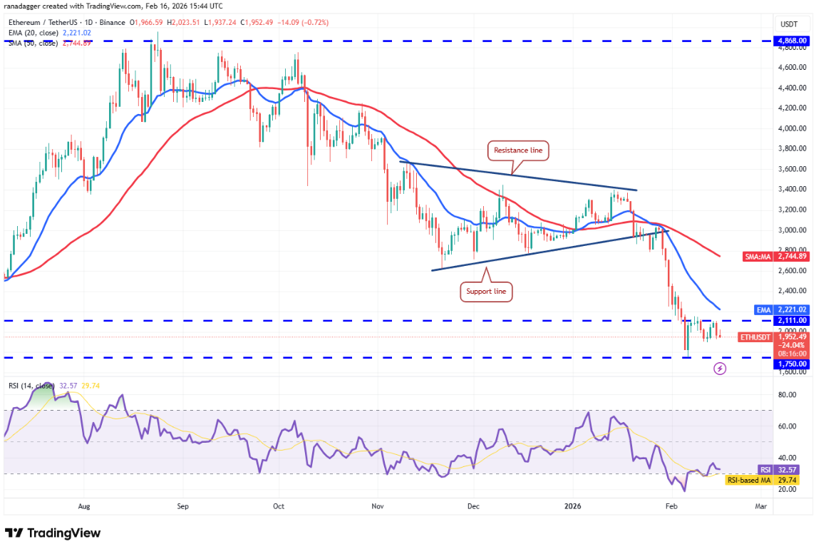 Ether (ETH) một lần nữa quay đầu giảm từ mốc $2.111 vào Chủ nhật, cho thấy phe gấu đang bảo vệ mức giá này một cách quyết liệt.