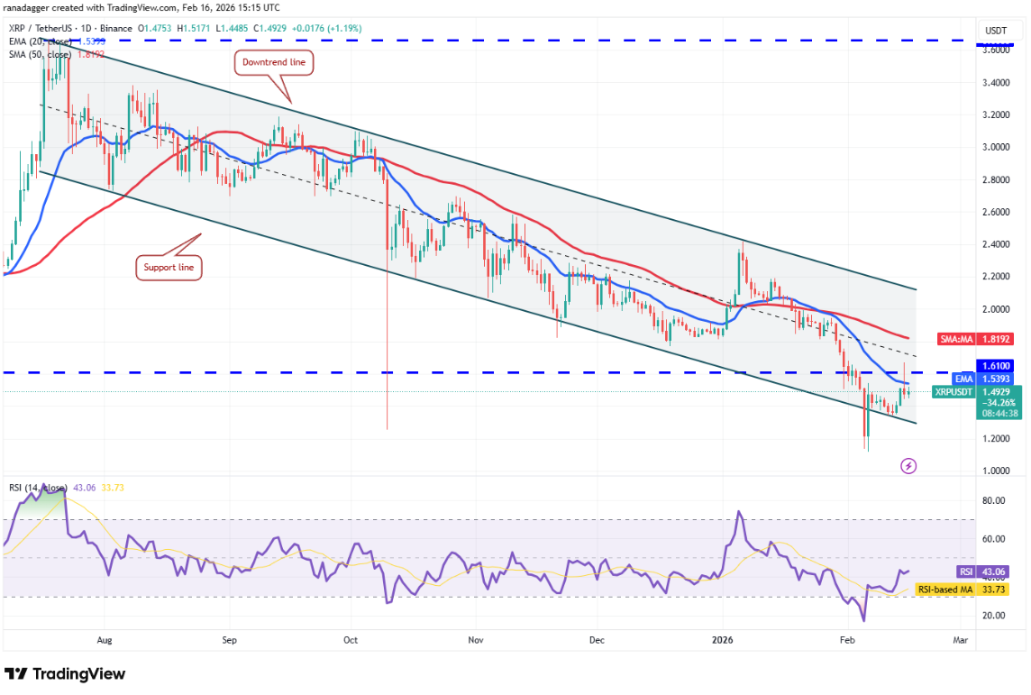 Tuy nhiên, phe gấu đã bảo vệ thành công mức phá vỡ $1,61 và kéo giá XRP trở lại dưới đường EMA 20 ngày. Phe bò khó có khả năng bỏ cuộc dễ dàng và sẽ tiếp tục nỗ lực vượt qua mốc $1,61.