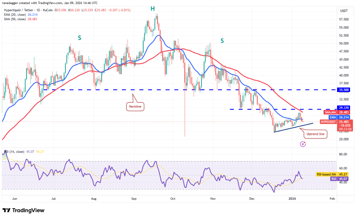 Hyperliquid (HYPE) đang giao dịch quanh 25,05 USD, đã quay đầu giảm từ đường SMA 50 ngày (28,48 USD) vào thứ Tư và rơi xuống dưới đường EMA 20 ngày (26,21 USD) vào thứ Năm.
