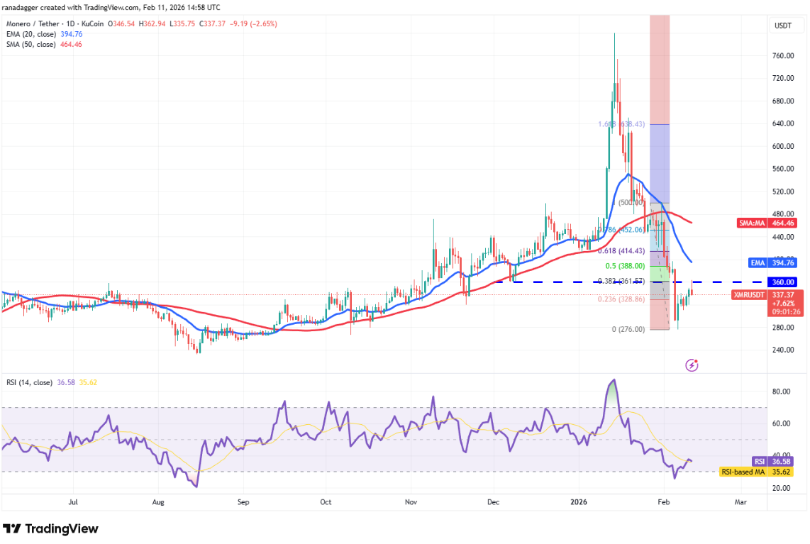 Monero (XMR) đã chạm ngưỡng Fibonacci thoái lui 38,2% tại 361 USD, nơi phe gấu đang tạo ra thách thức mạnh mẽ.