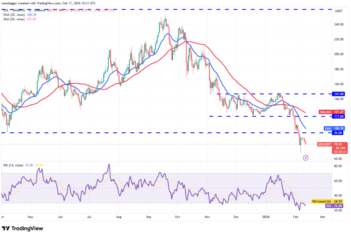 Có hỗ trợ nhỏ tại 77 USD, nhưng nếu bị xuyên thủng, cặp SOL/USDT có thể giảm xuống 67 USD. Người mua được kỳ vọng sẽ bảo vệ mạnh mẽ mốc 67 USD, bởi nếu bị phá vỡ, đà giảm có thể mở rộng về 50 USD.