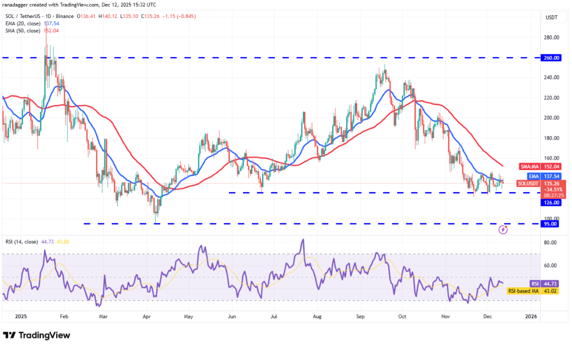 Bóng nến dài trên cây nến thứ Năm của Solana (SOL) cho thấy phe bò đang phòng thủ quyết liệt vùng 126 USD.