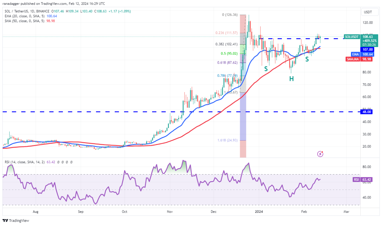 Phe bò đã đẩy Solana (SOL) lên trên đường viền cổ của mô hình H&S nghịch đảo vào ngày 10 tháng 2 và đang cố gắng bảo vệ mức này trong đợt thoái lui vào ngày 12 tháng 2.