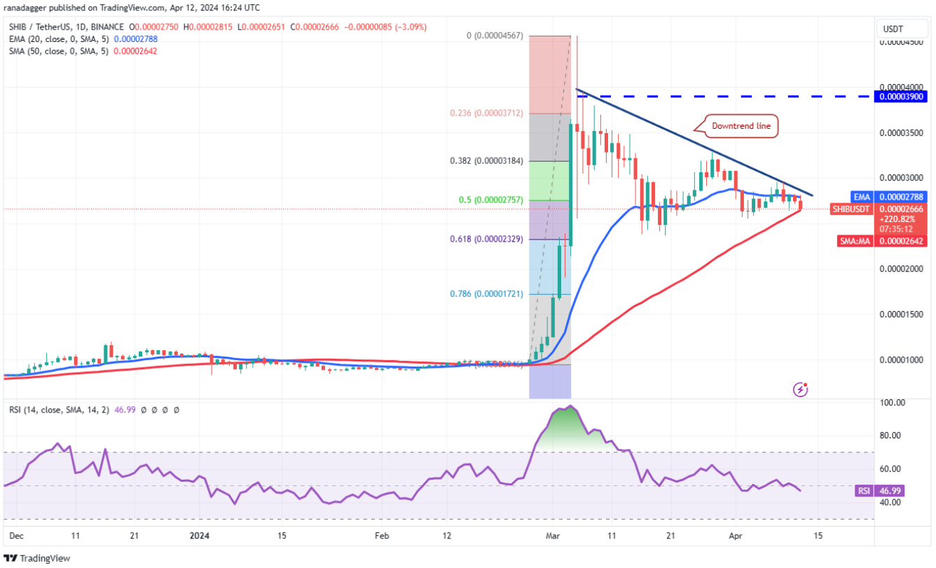 Shiba Inu (SHIB) đã dao động quanh đường EMA 20 ngày ($0,000028) trong vài ngày qua, cho thấy trạng thái cân bằng giữa người mua và người bán.