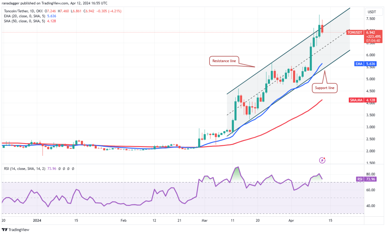 Toncoin (TON) đã bứt phá và đóng cửa trên mô hình kênh tăng dần vào ngày 11 tháng 4, nhưng phe bò không thể duy trì đà tăng vào ngày 12 tháng 4.