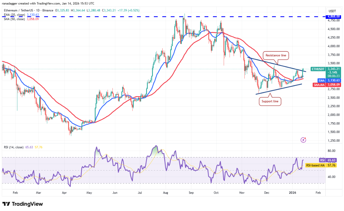 Phe gấu sẽ cố gắng kéo giá quay trở lại bên trong tam giác, nhưng nếu phe bò bảo vệ thành công đường kháng cự này, cặp ETH/USDT có thể tăng lên 3.659 USD và sau đó là 4.000 USD.