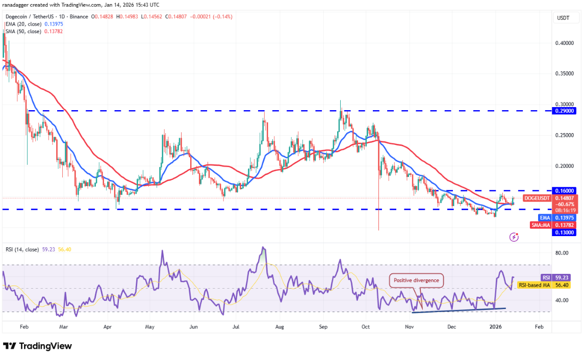 Nếu phe bò đẩy giá vượt qua ngưỡng kháng cự 0,16 USD, cặp DOGE/USDT sẽ hoàn thiện mô hình vai–đầu–vai ngược mang tính tăng giá. Khi đó, giá Dogecoin có thể tăng lên mục tiêu 0,20 USD.