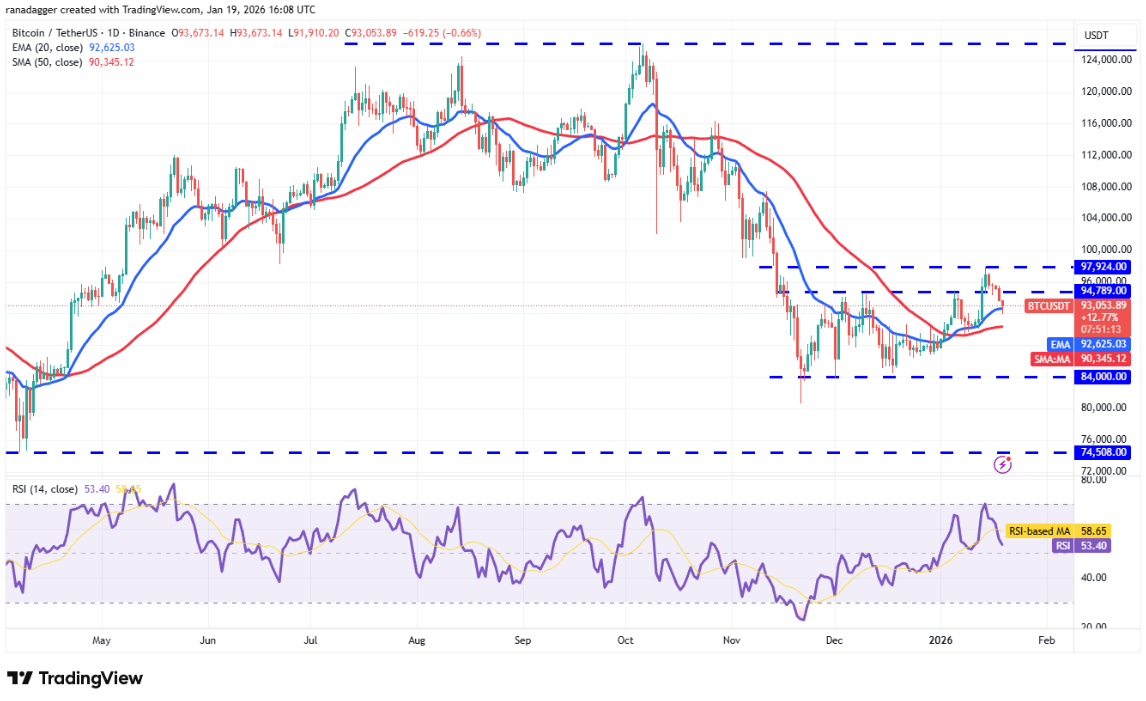 Đợt điều chỉnh của Bitcoin đã chạm tới đường EMA 20 ngày tại 92.625 USD — một vùng hỗ trợ ngắn hạn then chốt cần theo dõi.