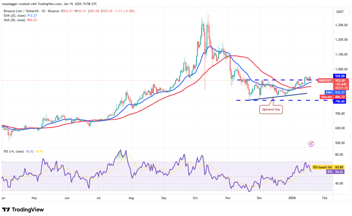 Tuy nhiên, phe gấu nhiều khả năng sẽ không đứng yên. Họ sẽ tìm cách bảo vệ vùng kháng cự phía trên và kéo cặp BNB/USDT xuống dưới đường SMA 50 ngày (884 USD). Nếu điều đó xảy ra, nó cho thấy thị trường đã từ chối cú bứt phá trên mốc 928 USD, và cặp tiền có thể trượt về đường xu hướng tăng, thậm chí là vùng 790 USD.