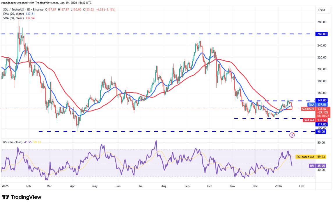 Solana (SOL) đã quay đầu giảm từ vùng kháng cự 147 USD và lùi về đường trung bình động đơn giản (SMA) 50 ngày quanh 132 USD, cho thấy phe gấu đang hoạt động mạnh ở các vùng giá cao.