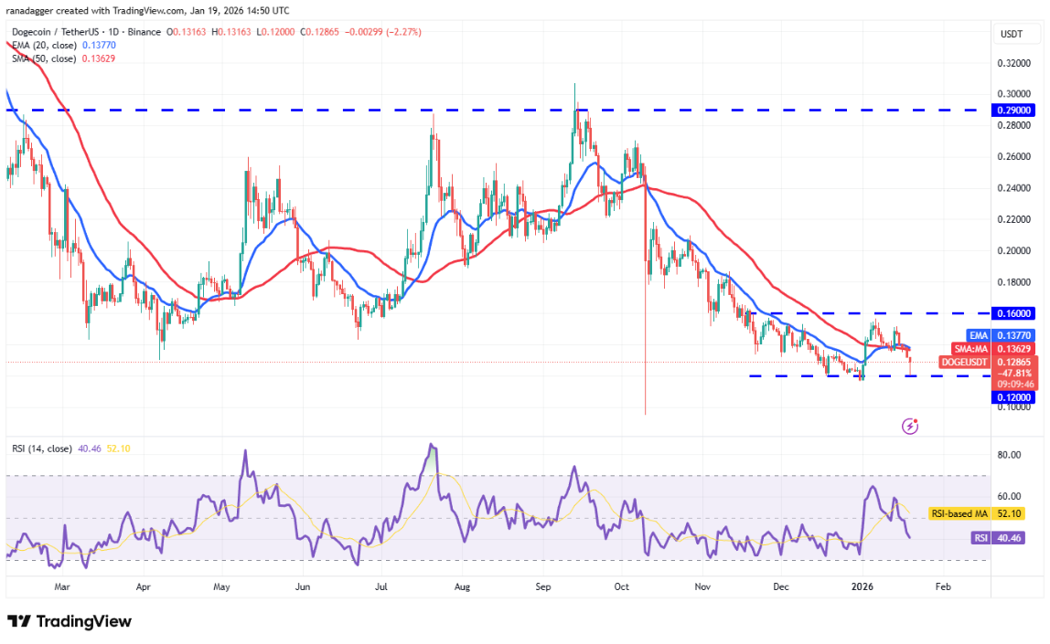 Dogecoin (DOGE) đã rơi xuống dưới các đường trung bình động vào Chủ nhật và chạm vùng hỗ trợ 0,12 USD vào thứ Hai.