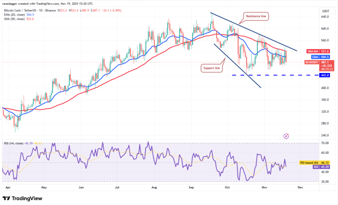 Giá Bitcoin Cash sau đó quay đầu giảm mạnh và xuyên xuống dưới các đường trung bình động. Người bán sẽ tìm cách củng cố ưu thế bằng cách kéo giá xuống dưới hỗ trợ 443 USD. Nếu thành công, cặp BCH/USDT có thể lao thẳng về đường hỗ trợ phía dưới.
