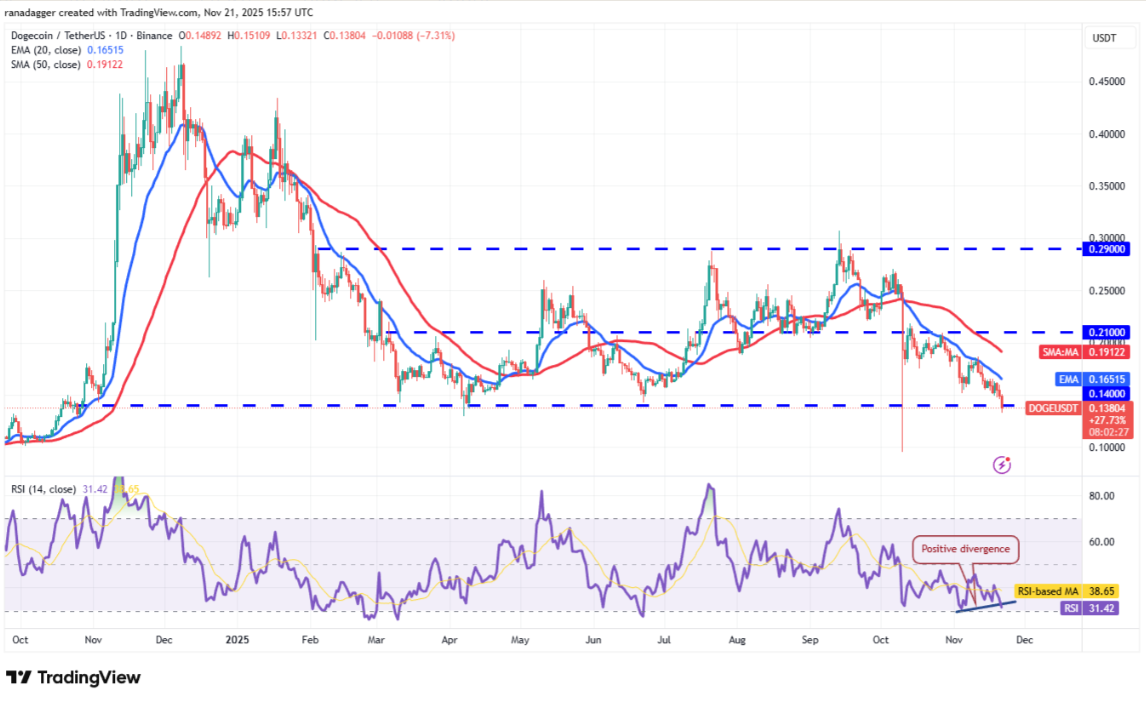 Giá Dogecoin (DOGE) đã chạm đáy của vùng dao động 0,14–0,29 USD, nơi được kỳ vọng sẽ xuất hiện lực mua.