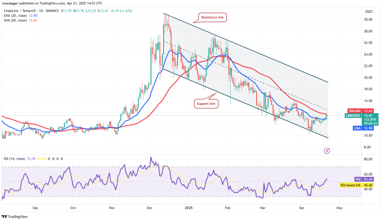 Giá Chainlink (LINK) đã đóng cửa trên đường EMA 20 ngày ($12,90) vào ngày 19 tháng 4 và đã chạm đến đường SMA 50 ngày ($13,63).