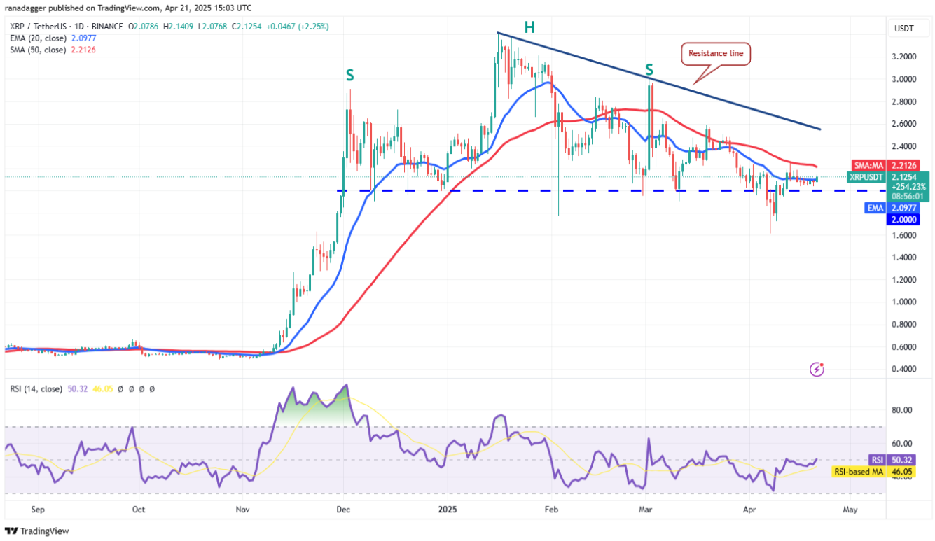 Mức kháng cự tiếp theo nằm tại đường SMA 50 ngày ($2,21). Nếu vượt qua được ngưỡng này, cặp XRP/USDT có thể hướng tới đường kháng cự cao hơn. Tuy nhiên, phe gấu dự kiến sẽ bảo vệ vùng này một cách mạnh mẽ vì nếu bị xuyên thủng, đó có thể là tín hiệu cho một sự đảo chiều xu hướng.