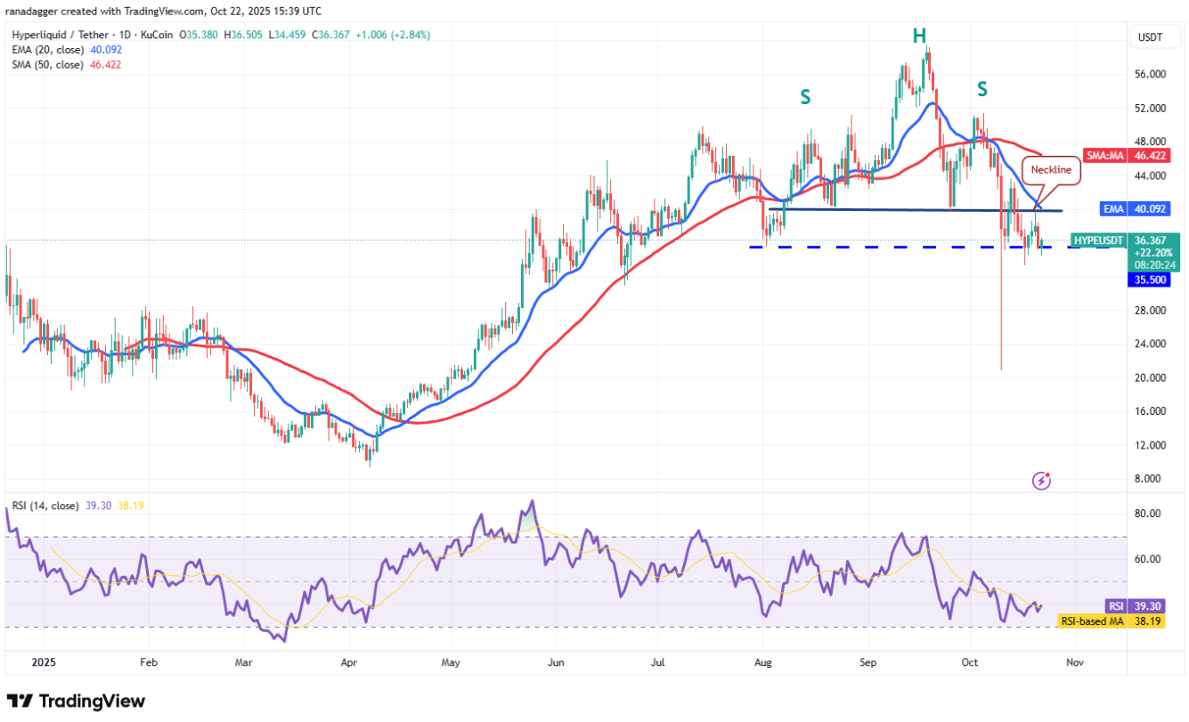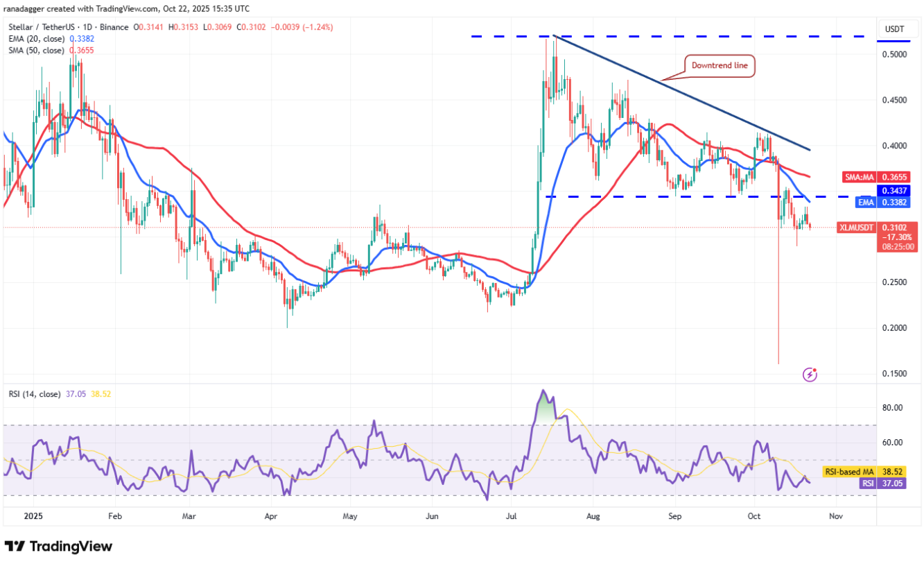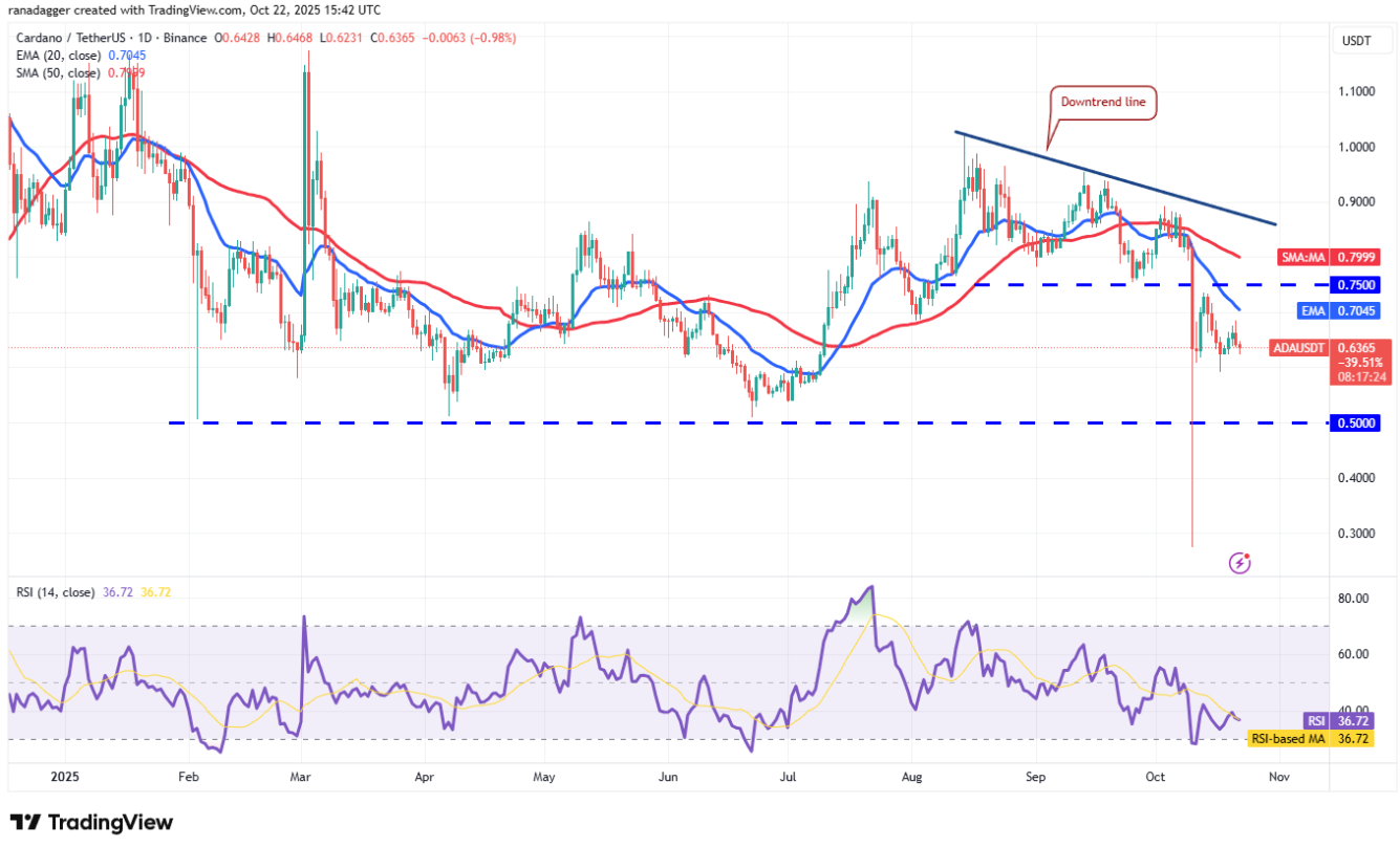 Dogecoin (DOGE) không thể vượt qua đường EMA 20 ngày (0,21 USD), cho thấy phe gấu tiếp tục bán mạnh ở những nhịp hồi nhỏ.