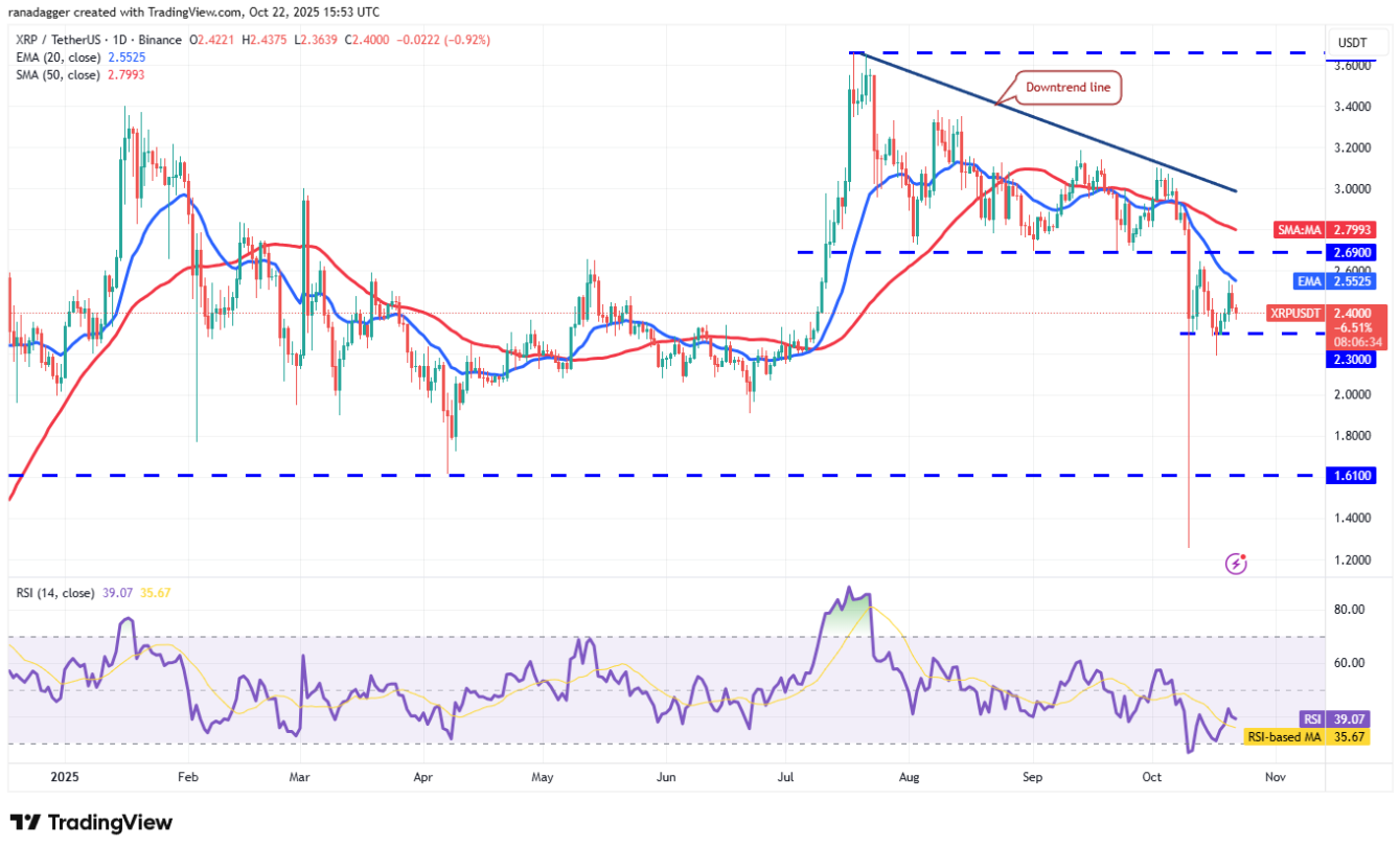 XRP (XRP) bật lên từ vùng 2,30 USD nhưng nhanh chóng suy yếu tại EMA 20 ngày (2,55 USD) vào thứ Ba, phản ánh tâm lý tiêu cực trên thị trường.
