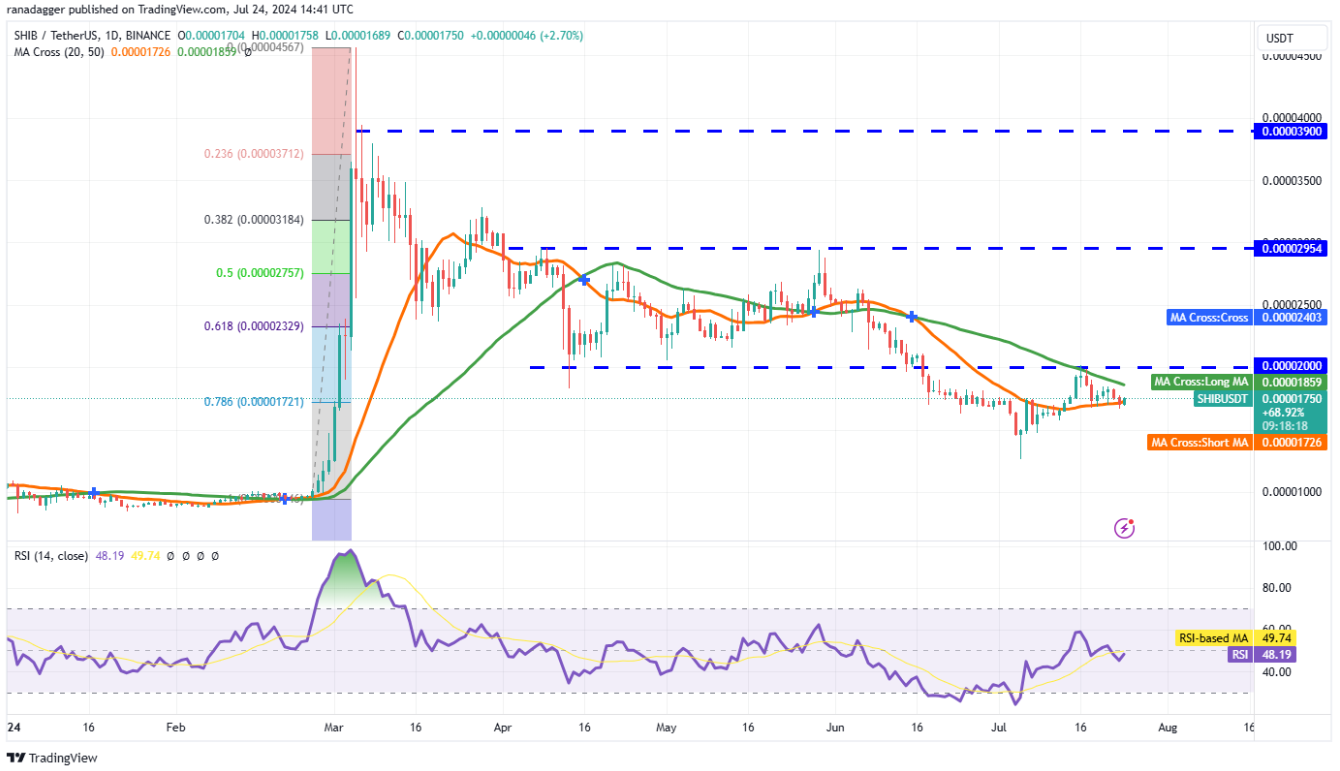 Cặp SHIB/USDT có khả năng sẽ mạnh lên sau khi người mua đẩy giá lên trên $0,000020. Một động thái như vậy sẽ cho thấy rằng thị trường đã từ chối các mức thấp hơn. Sau đó, cặp tiền này có thể cố gắng tăng giá lên $0,000026.