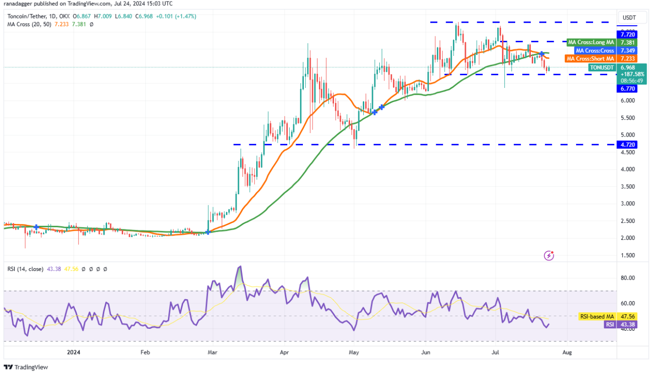 Toncoin (TON) đã giảm xuống ngưỡng hỗ trợ của phạm vi ở $6,77, đây là mức quan trọng cần chú ý.