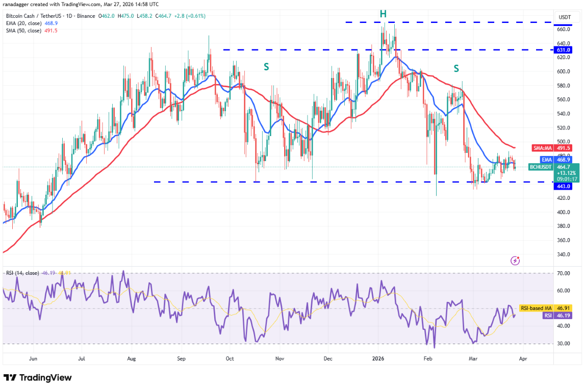 Bitcoin Cash (BCH) đã giảm xuống dưới EMA 20 ngày ($468) vào thứ Năm, cho thấy phe gấu đang cố duy trì kiểm soát.