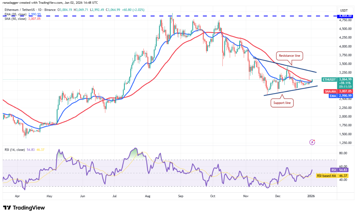 Nếu giá đóng cửa trên đường SMA 50 ngày tại 3.007 USD, cặp ETH/USDT có thể tăng lên đường kháng cự của mô hình. Phe gấu được kỳ vọng sẽ phòng thủ quyết liệt tại đây, bởi nếu bị phá vỡ, ETH có thể mở ra đà tăng hướng tới mốc 4.000 USD.