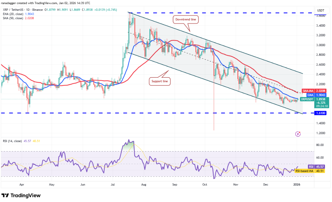 Nếu điều này xảy ra, cặp XRP/USDT có thể tăng lên đường xu hướng giảm. Mặc dù có kháng cự tại đường SMA 50 ngày (2,02 USD), nhưng khả năng cao mức này sẽ bị vượt qua. Tuy vậy, phe gấu được kỳ vọng sẽ phòng thủ mạnh tại đường xu hướng giảm. Nếu giá quay đầu giảm mạnh từ đây, XRP có thể tiếp tục dao động trong kênh giá thêm một thời gian.