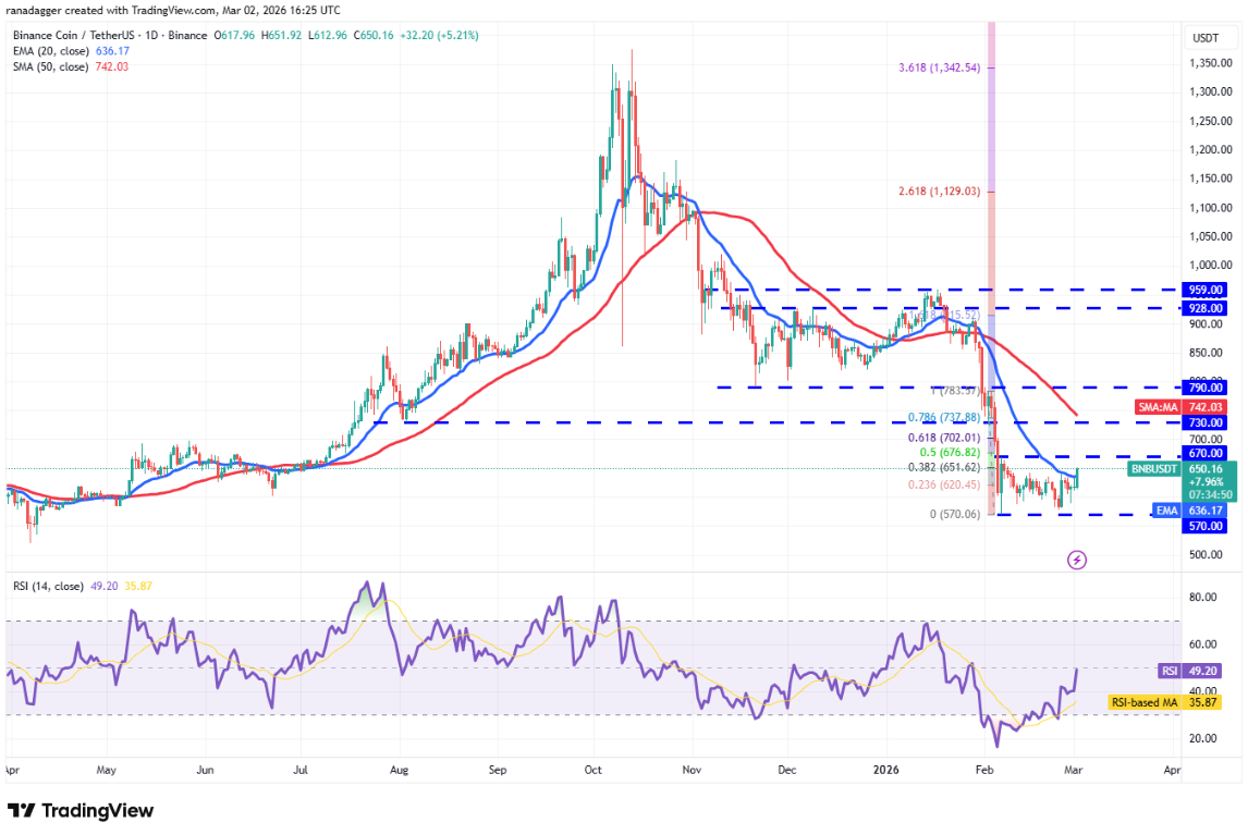BNB đã giao dịch trong vùng từ 570 đến 670 USD trong một thời gian, cho thấy lực mua xuất hiện ở các mức giá thấp hơn.