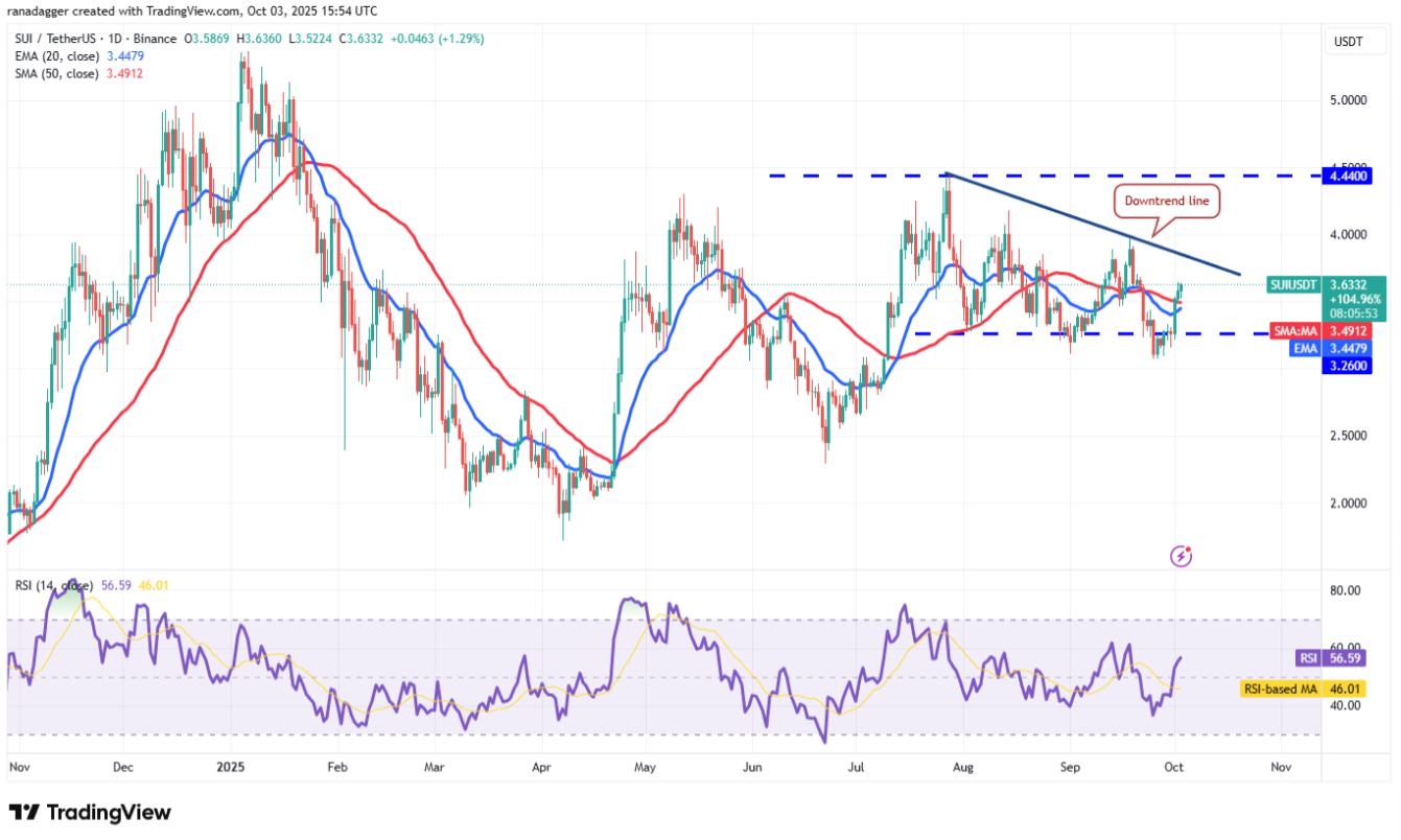 Nếu phe bò duy trì giá trên các đường trung bình động, cặp SUI/USDT có thể hướng tới đường xu hướng giảm. Phe gấu được kỳ vọng sẽ bảo vệ đường xu hướng này một cách quyết liệt, bởi nếu bị xuyên thủng, giá Sui có thể bứt phá lên 4,20 USD, thậm chí mở rộng tới 4,44 USD.